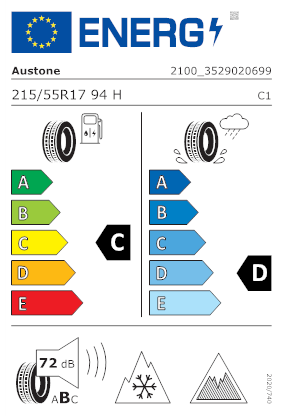 Il pneumatico ha le seguenti caratteristiche in base all'etichetta europea: