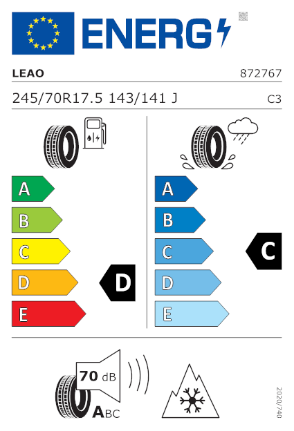 Il pneumatico ha le seguenti caratteristiche in base all'etichetta europea: