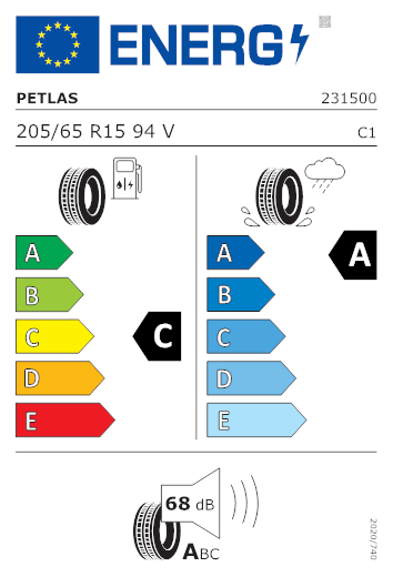 Il pneumatico ha le seguenti caratteristiche in base all'etichetta europea: